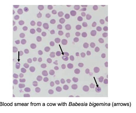 Cattle: Babesia bovis> B. bigemina in disease severity