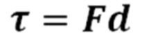 Torque (τ) created by a force = to the lever arm (d) x the magnitude of the force (F)