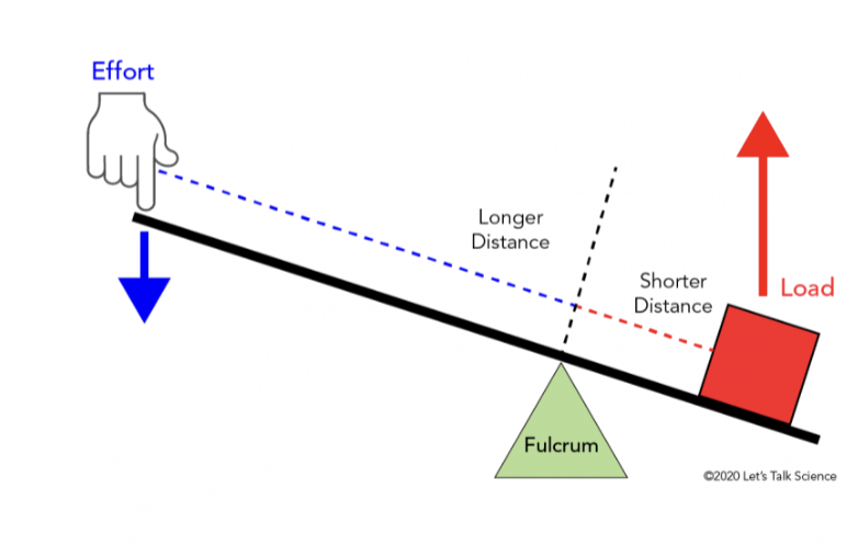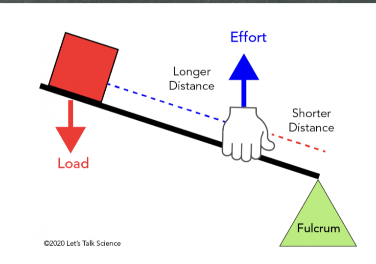 These forces interact through a system of bony levers, with the pivot point located at the axis of rotation of our joints