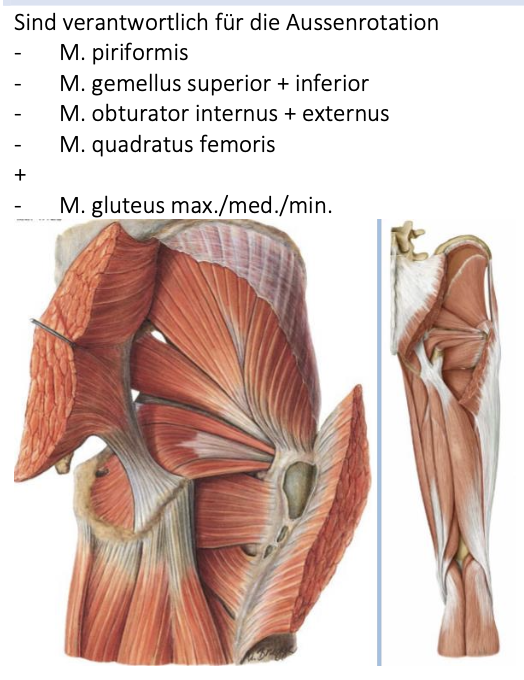 → Kleine Gluteen sind Mehrzweckmuskeln, die viele Wirkungsmöglichkeiten haben. Sie können im Hüftgelenk bei allen Bewegungen, mit Ausnahme der Adduktion, mitwirken.