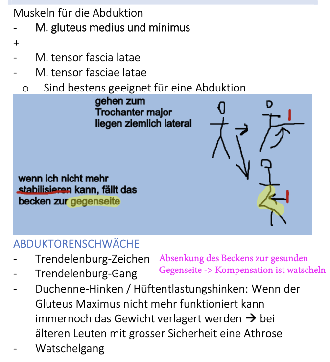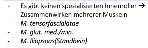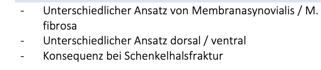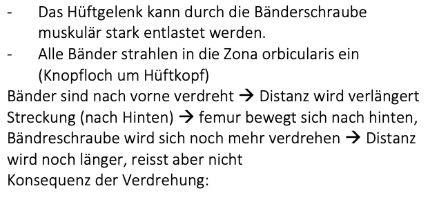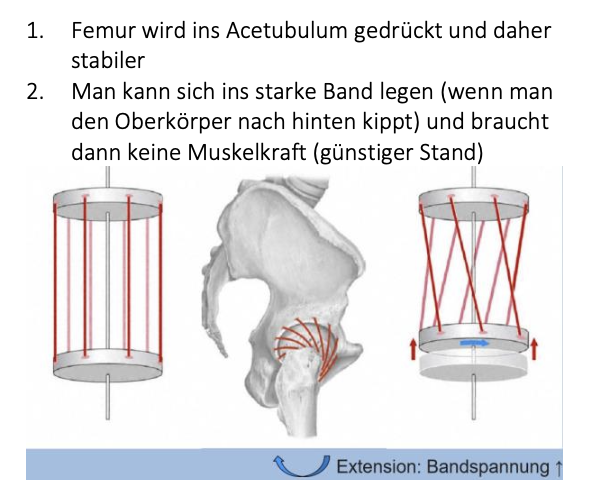 Variante: einseitg → auf dem belasteten Bein geht das Hüftgelnek zusätzlihc in adduktionsstelllung, die ebenfalls druch die “Bänderscharub” blockiert wird (nun vollgespannt). Das andere Bein wird weitgehend entlastet.