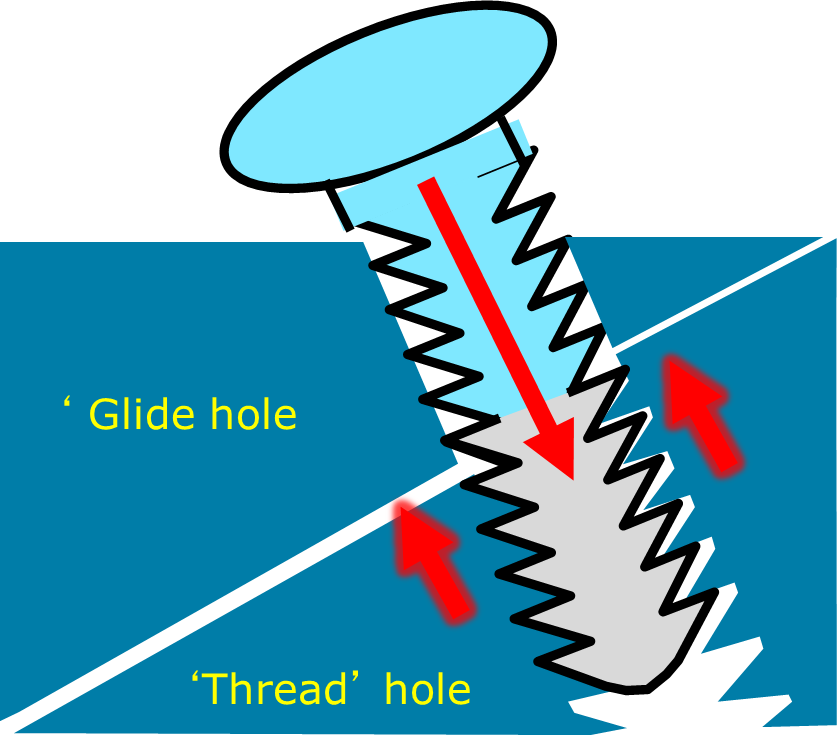 -screw starts at top of slope and when tighted moves down the slope and shifts one fragment towards fracture hence compressing