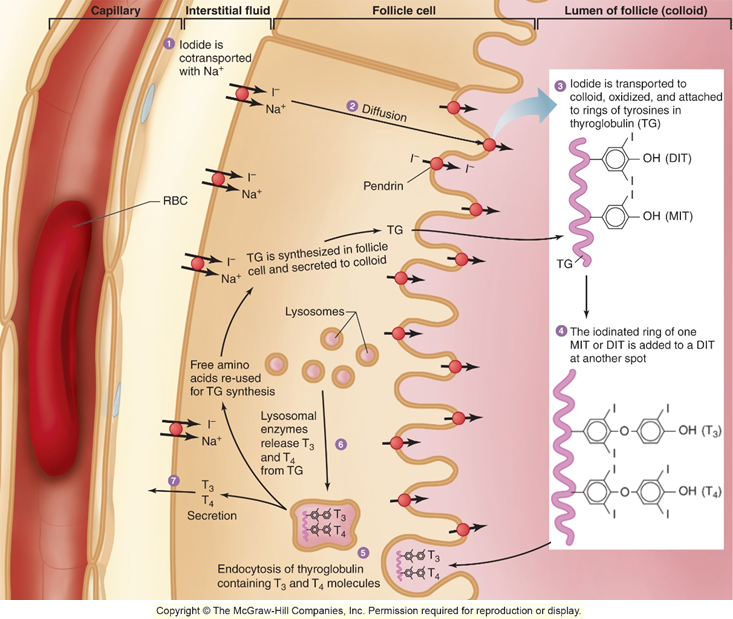 the T3/T4 is then endocytosed back into the blood
