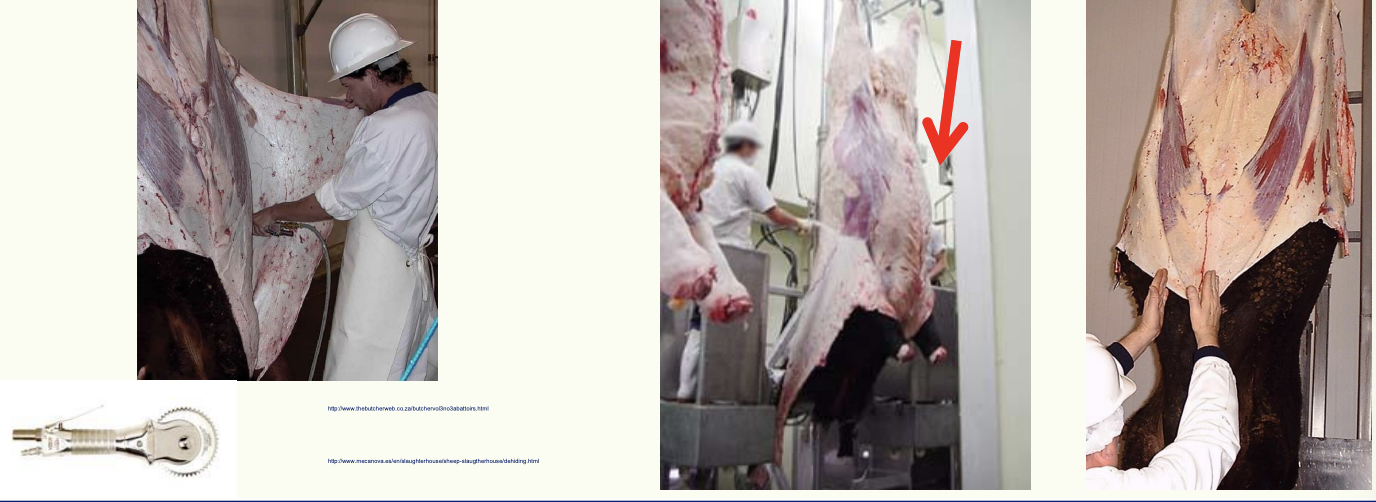 • Neck cut: severing carotid and jugular veins (usually smaller abattoirs without hoisting equipment