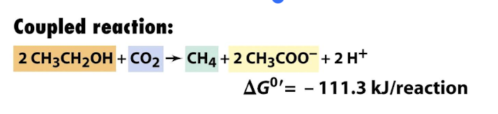 The coupled reaction of ethanol fermentation and methanogenesis by TWO prokaryotic species is exergonic