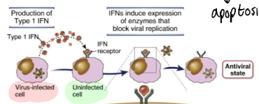 Flashcards covering innate immunity against viral infections, focusing on interferons (IFNs), their pathways, and the role of NK cells, based on lecture notes.