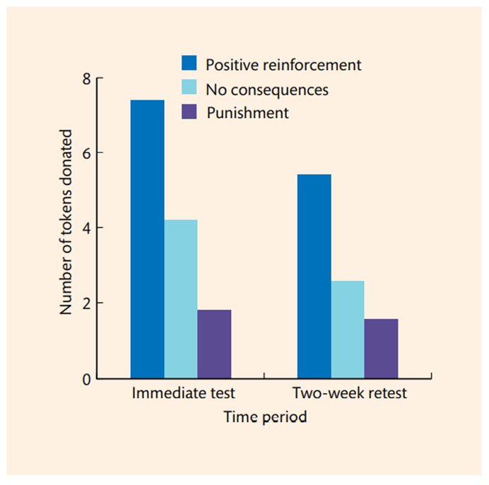 -found that children donated higher number of tokens when they saw the adult receiving positive reinforcement