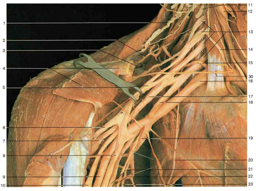 ulnar nerve, median nerve, musculocutaneous nerve, radial nerve