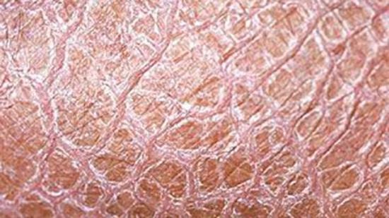 piel que está seca y áspera que se desprende en pequeñas escamas.