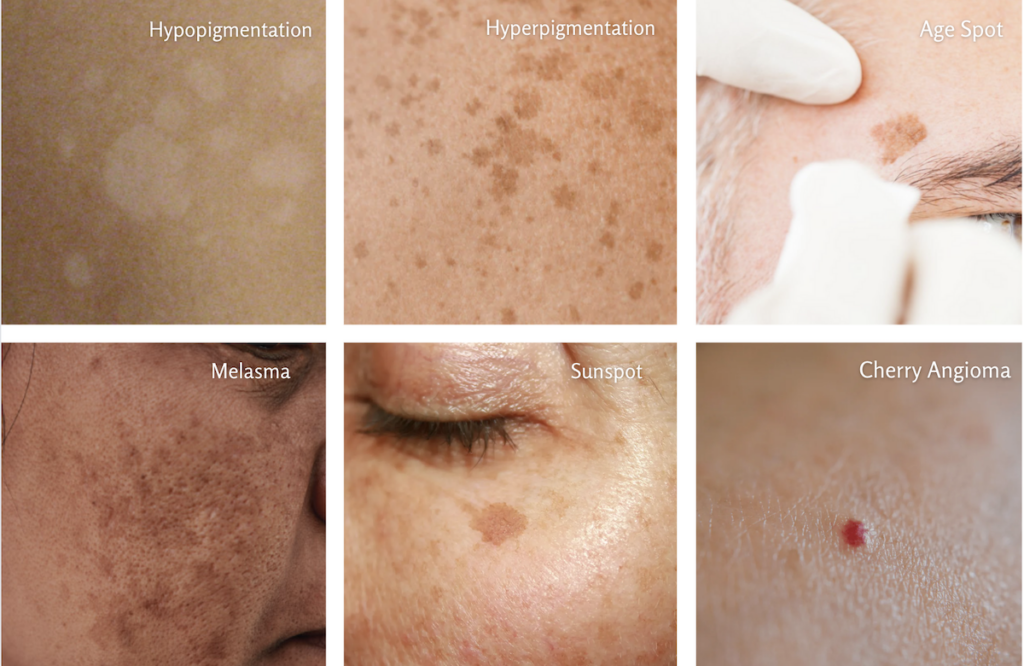 partes de la piel se vuelven más claras, oscuras o decoloradas.