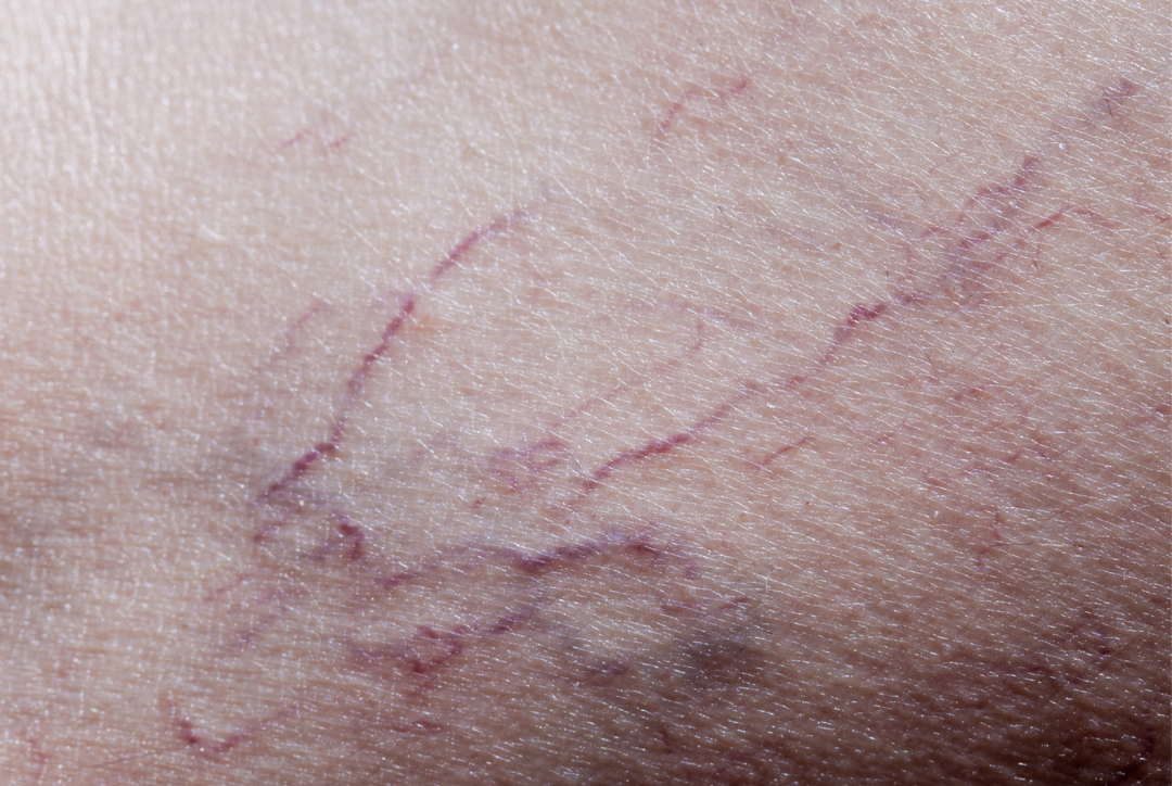 líneas delgadas debajo de la piel causadas por vasos sanguíneos estirados o dañados.