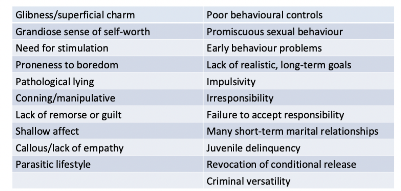 This checklist is used to determine whether someone meets criteria for psychopathy