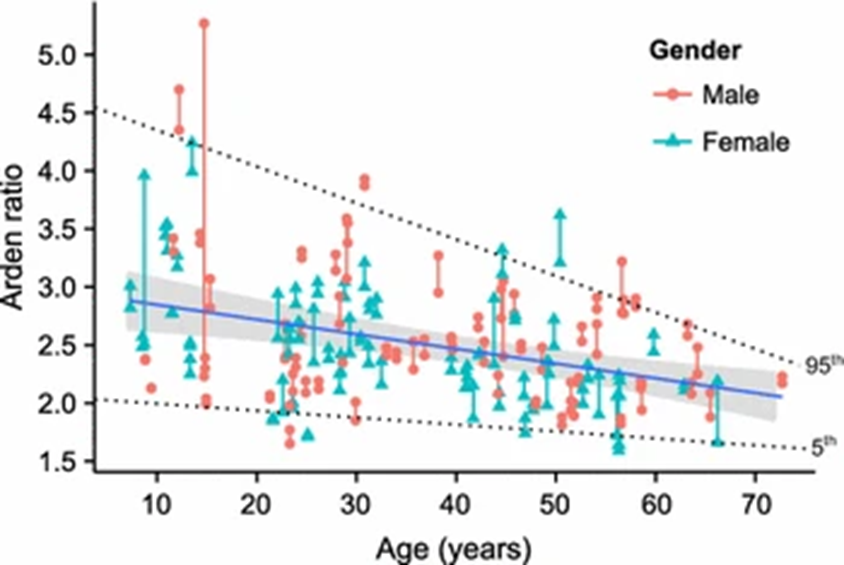 Light peak amplitude /dark peak amplitude = Arden Ratio