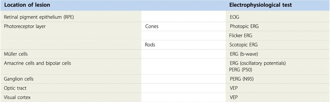 •The EOG measures the potential that exists between the cornea and Bruch's membrane at the back of the eye (where the RPE is)