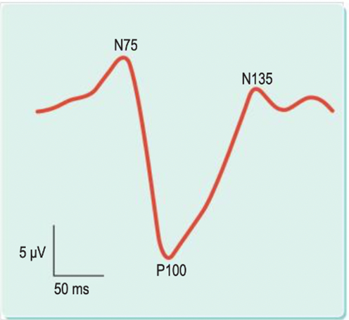 •Electrode is placed on occipital scalp adjacent to primary visual cortex - at the back of the head (unlike in EOG/ERG)