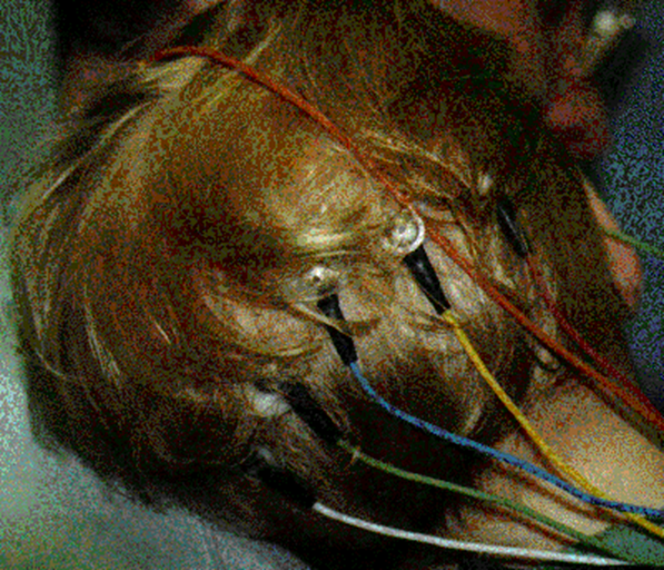 –A range of electrodes are placed across the occipital lobe (including reference electrode placed on non-visual part of brain)