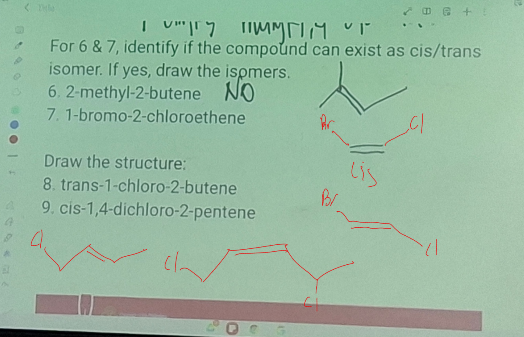 Cis and trans isomerism in Alkenes