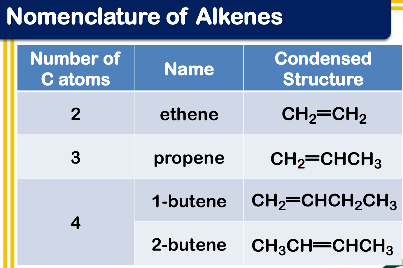 Systematic Names of Linear Alkenes