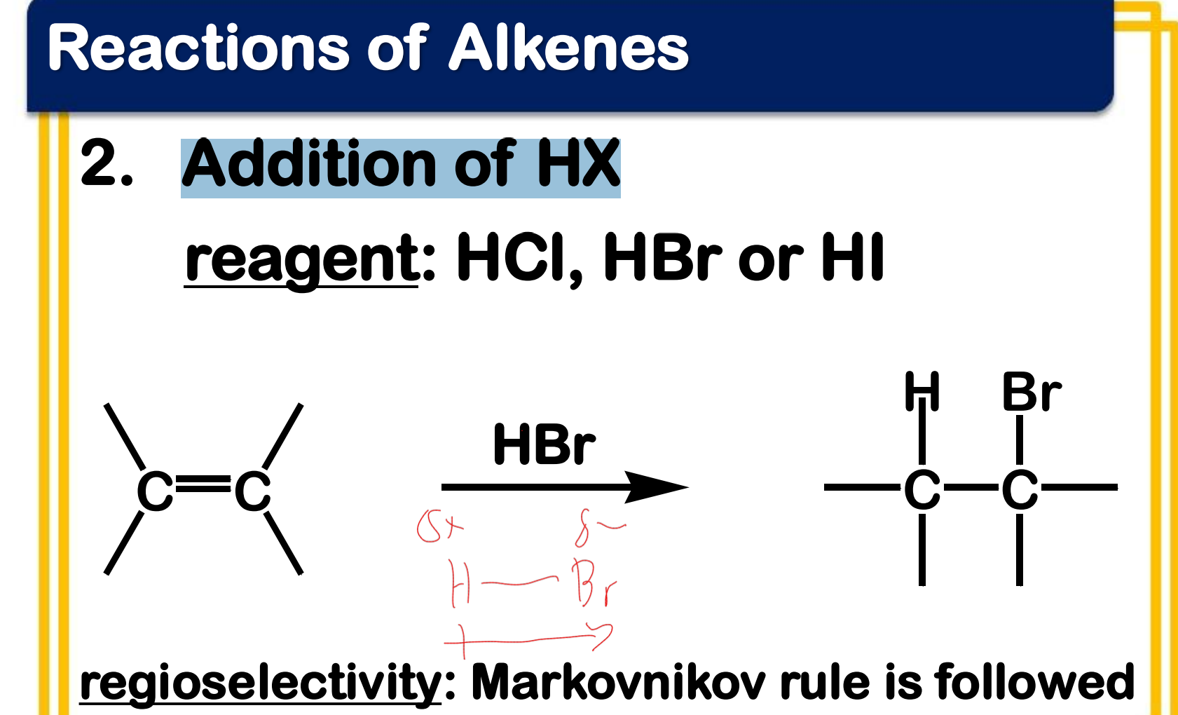 Electrophilic addition; Addition of HX