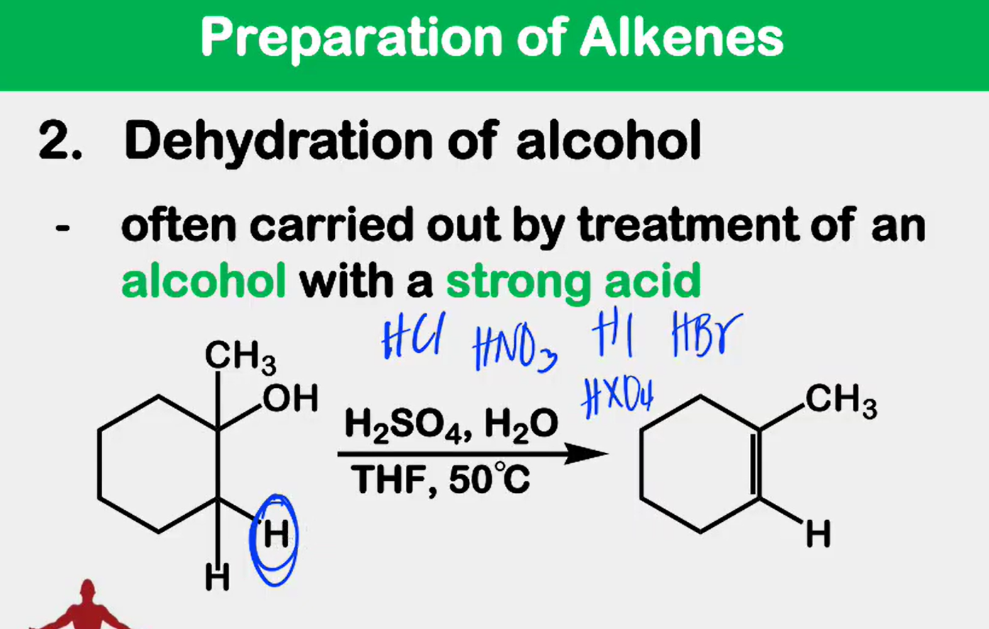_______________ of alcohol - often carried out by treatment of an alcohol with a strong acid