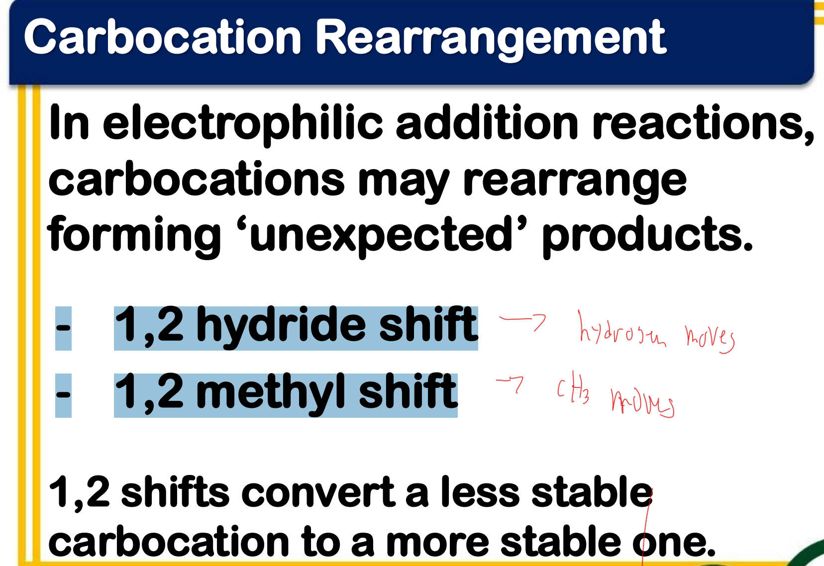 In electrophilic addition reactions, carbocations may rearrange forming ‘unexpected’ products. What are these changes called?