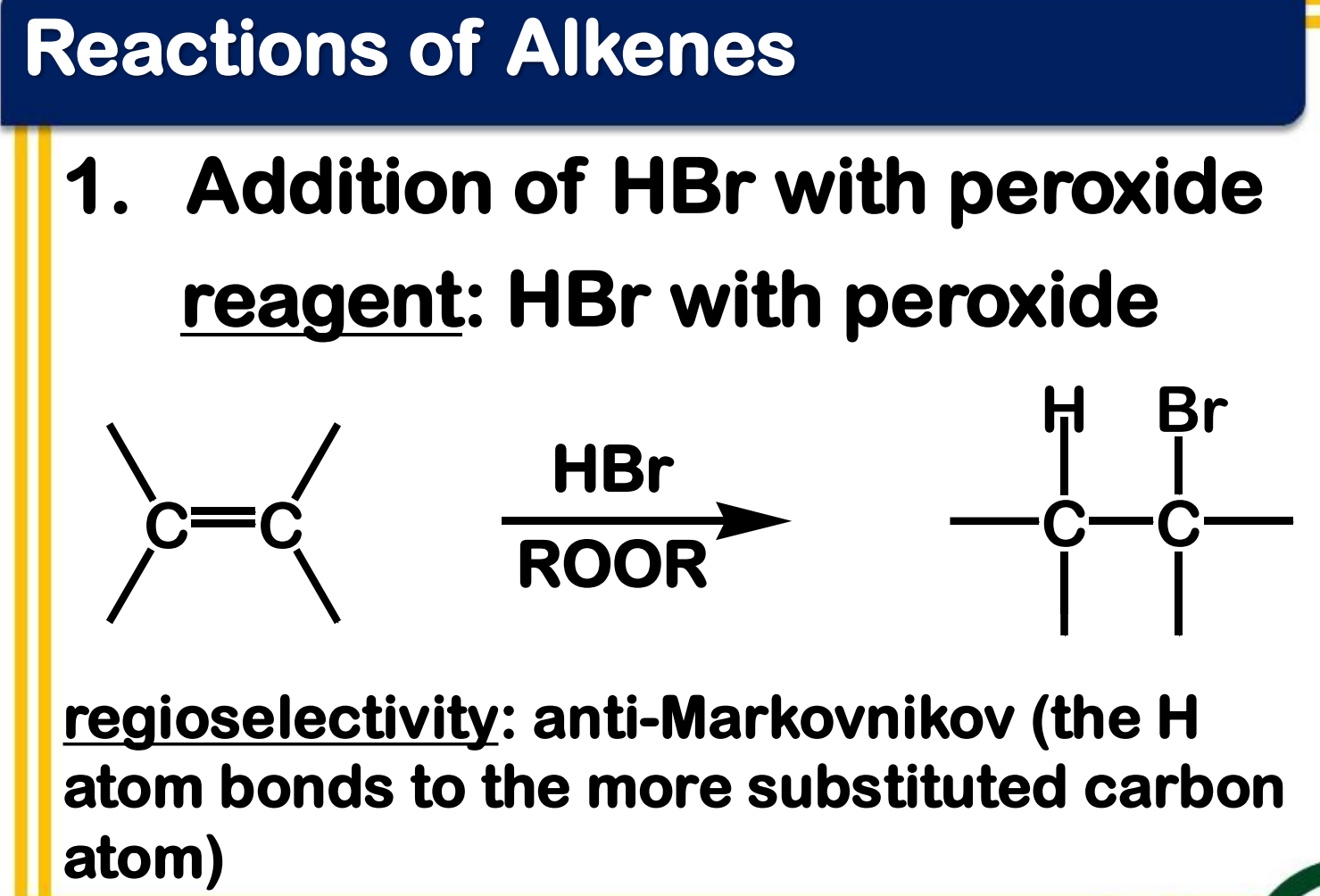 Free Radical Addition; Addition of HBr with peroxide