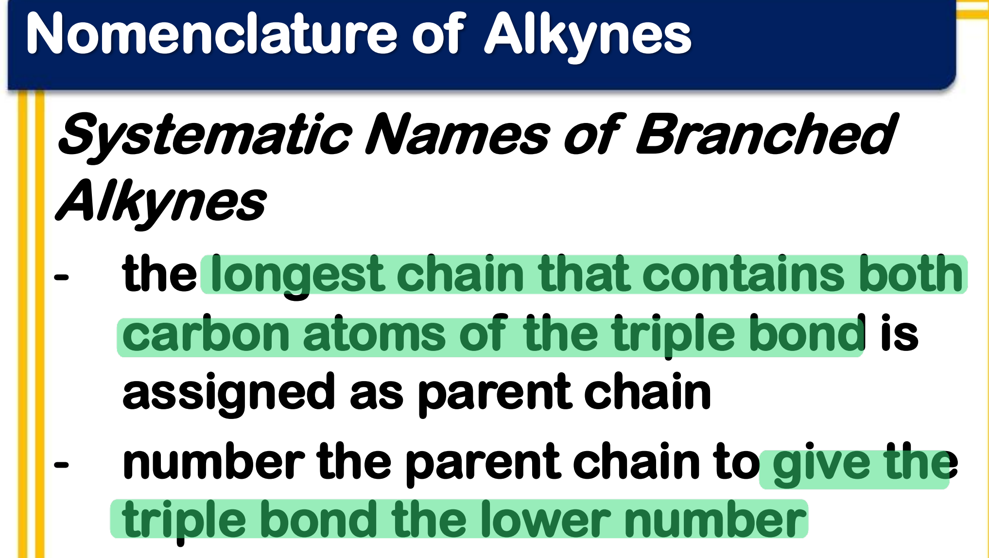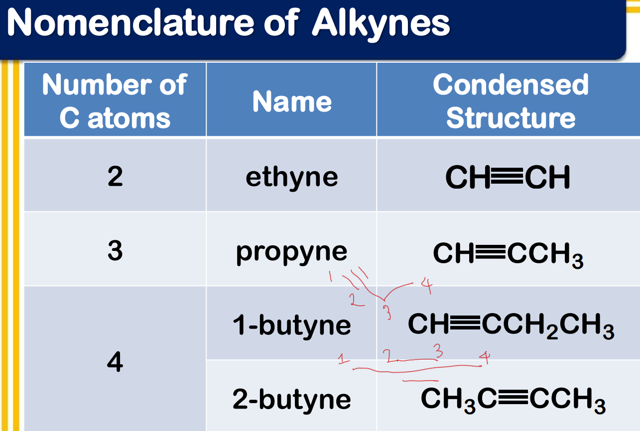 Systematic Names of Linear Alkynes
