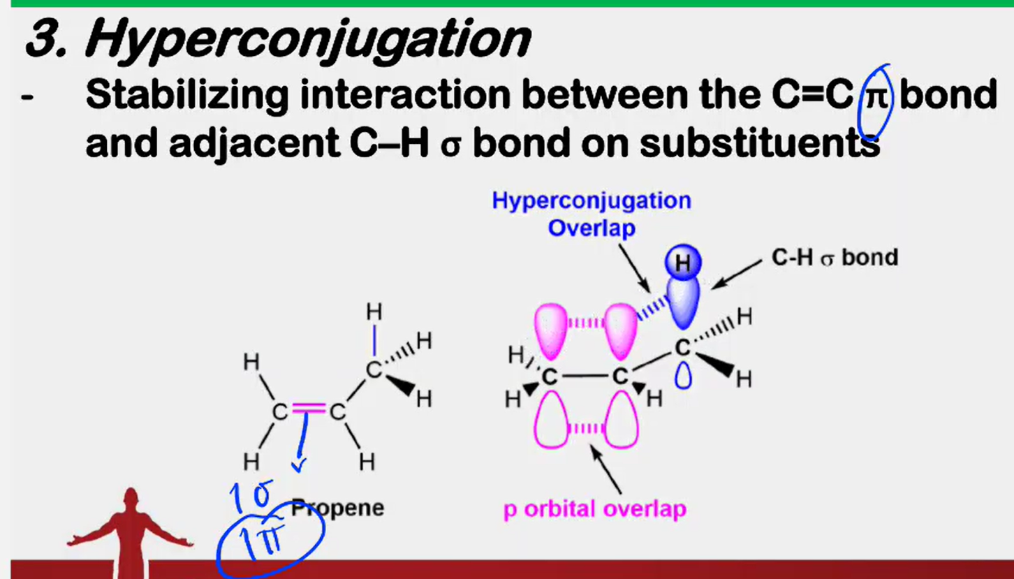 ___________________ - Stabilizing interaction between the C=C π bond and adjacent C-H o bond on substituents