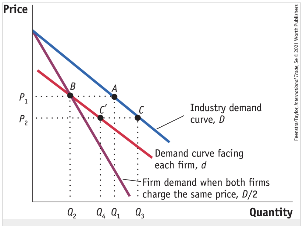 If both firms charged the price P1, then each firm’s demand is at a point on the curve