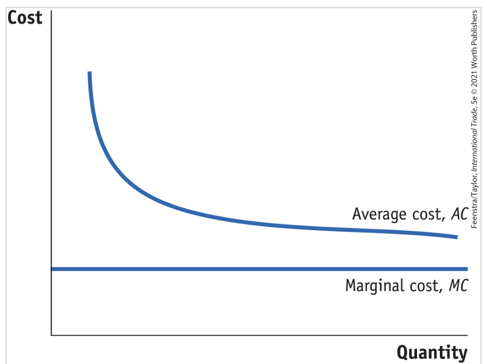 The average costs of production fall as the quantity produced increases