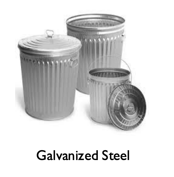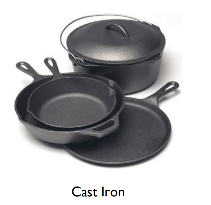 stainless steel (common, not that good of a conductor therefore it can sometimes have other layers of metal in it such as copper or aluminum)