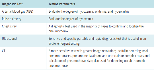Diagnostic tests for pneumothorax