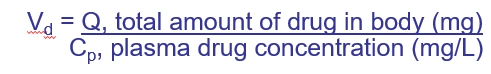 calculation for apparent volume of distribution Vd