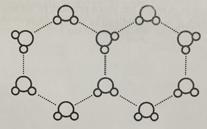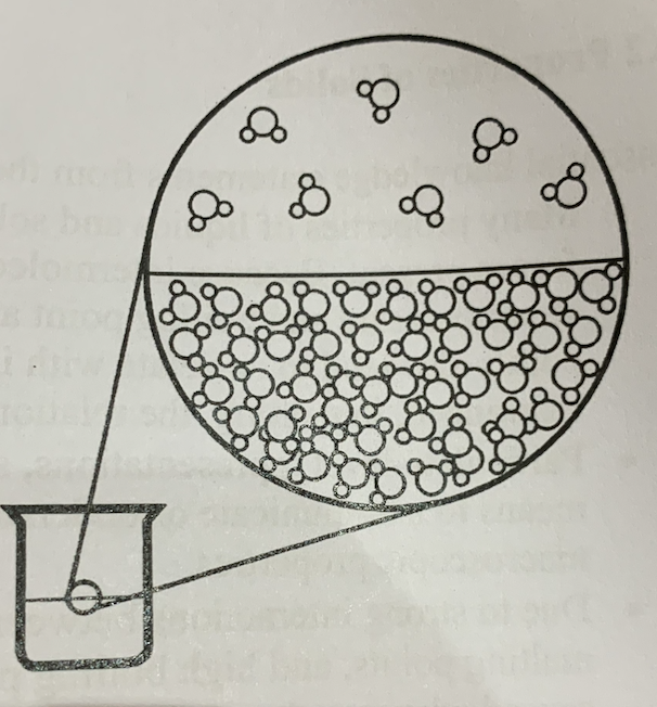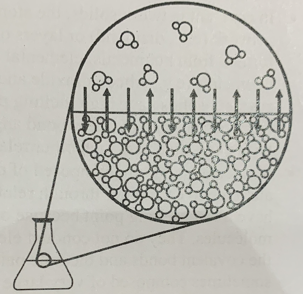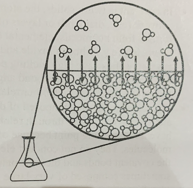 Draw diagram of a sample of pure water in a sealed flask at room temperature: