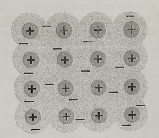 Attractions between positive metal cations and a “sea” of delocalized, mobile valence electrons