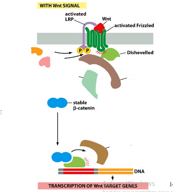 presence du ligand → activation de beta-catenine donc expression de regulateurs cles du cycle cellulaire