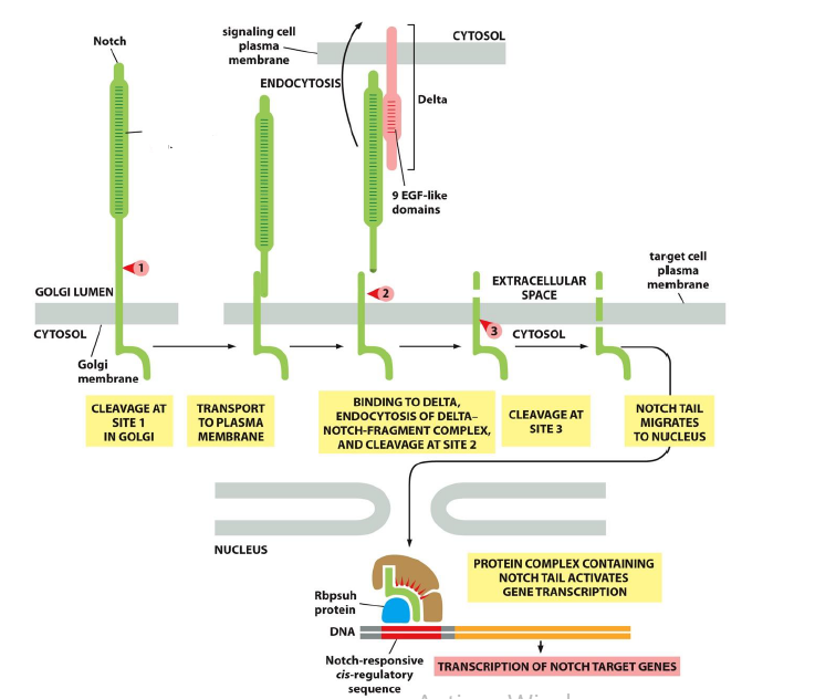 Notch Tail (domaine intracellulaire) se libere et permet d entrer dans le noyau pour activer la transcription des genes cibles