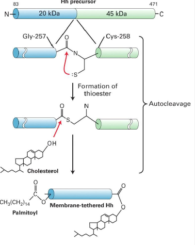 Qu induit les modifications faites sur le SHH maintentant mature ?