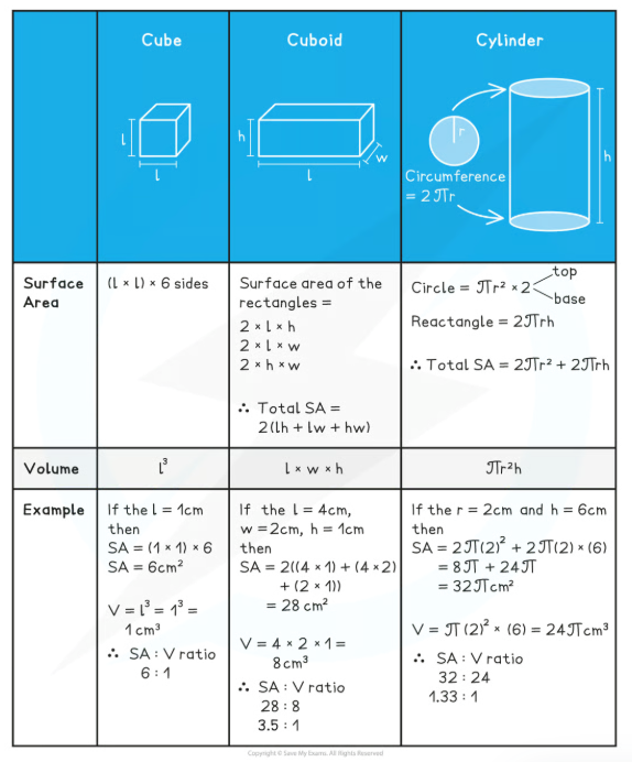 Which shapes should you kow how to calculate the surface area to volume ratio of?