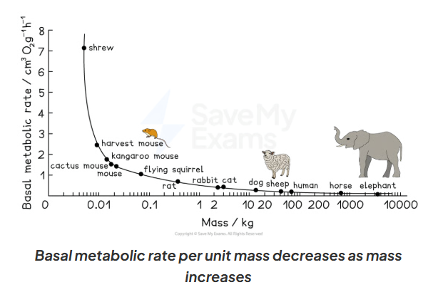 They have a higher SA:V ratio, will lose more heat to their surroundings, meaning that they need a relatively high metabolic rate to maintain body temperature.
