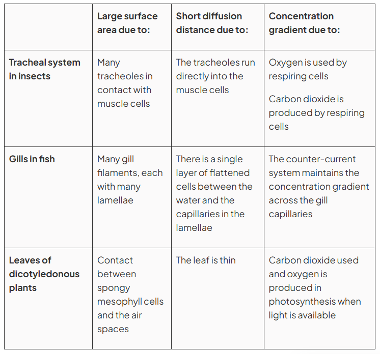 E.g. the gas exchange system and digestive system in mammals, and the leaves of plants