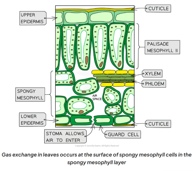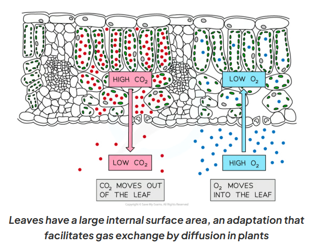 Leaves are flat and thin, reducing the diffusion distance for gases.