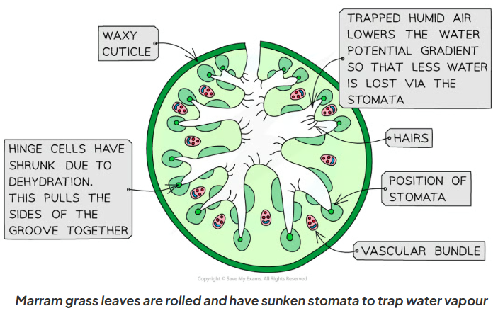 Leaves can roll up to reduce the exposure of surfaces to the wind
