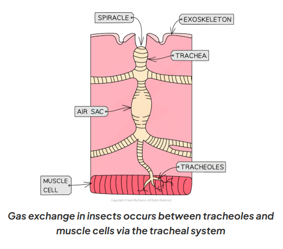 Many tracheoles lead to the muscle fibres, where their endings provide a large SA for gas exchange.