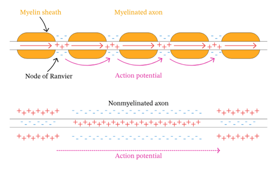 Action potentials – myelinated neurons
