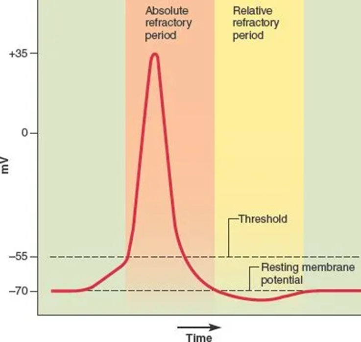 •The sodium-potassium pump will work to restore the resting membrane potential at -70mV