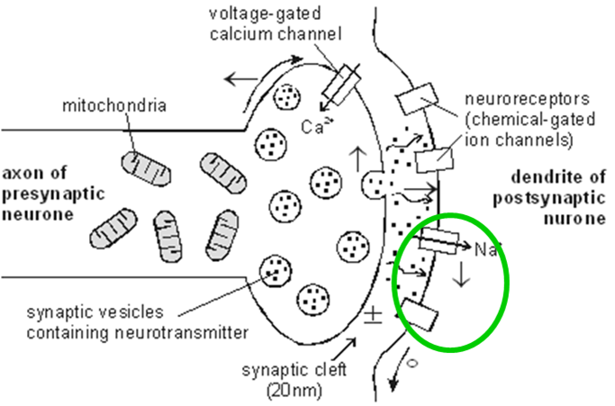 •Na+ flow into postsynaptic neuron