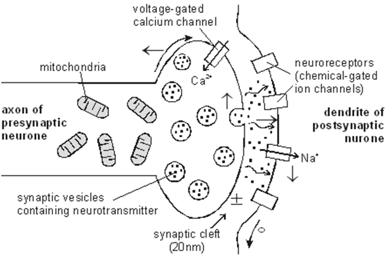 •At the end of the pre-synaptic neuron there are voltage gated calcium channels.