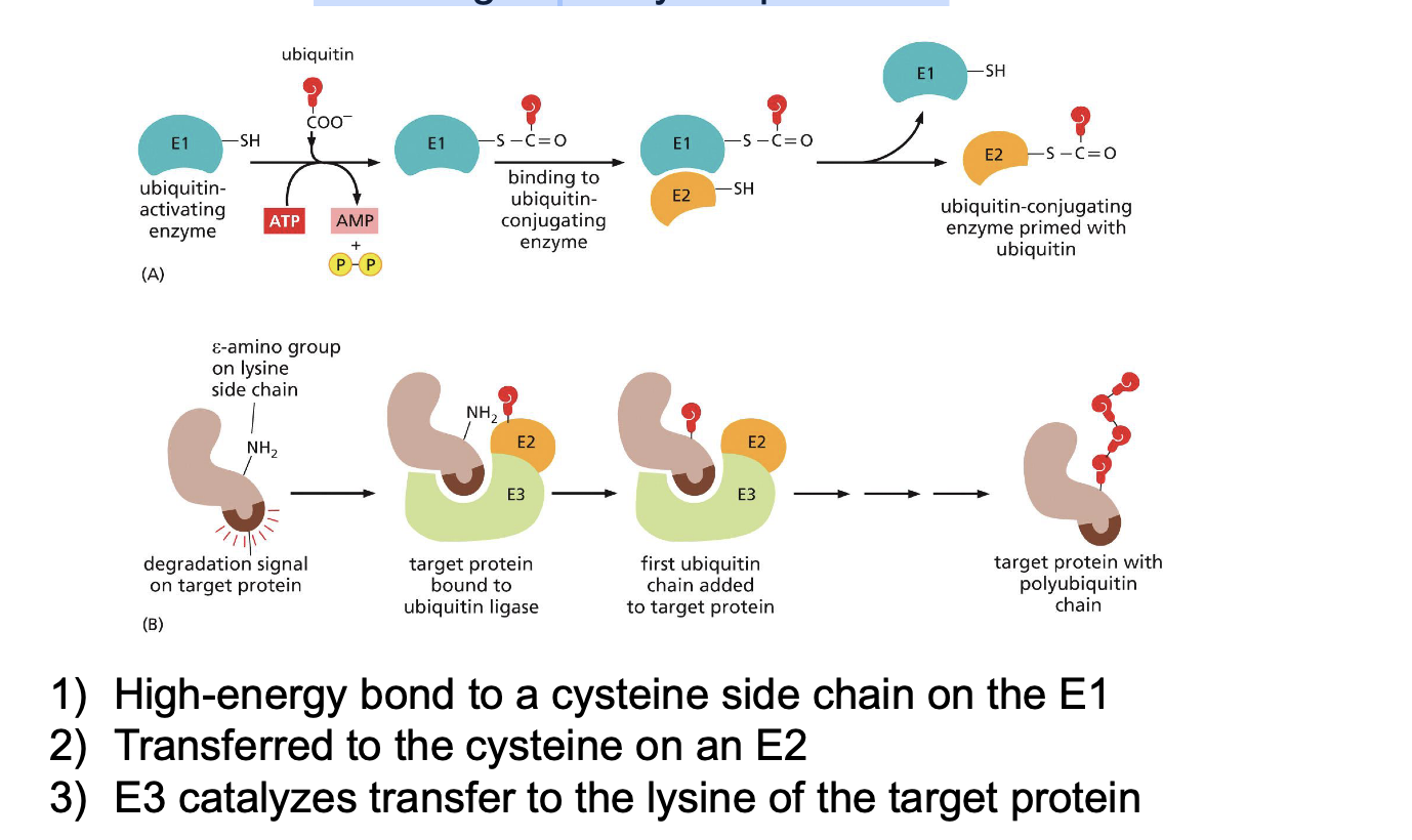 Switching on-off by ubiquitination: Name all relevant players and name all steps