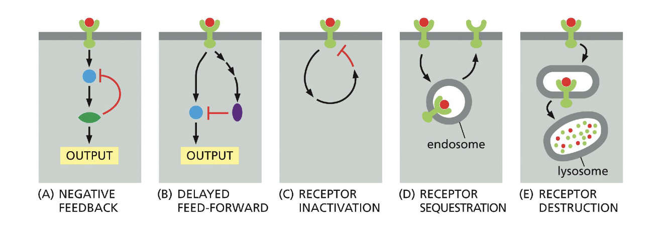 Receptor desensitization (pathways for destroying receptor) describe the following pathways: